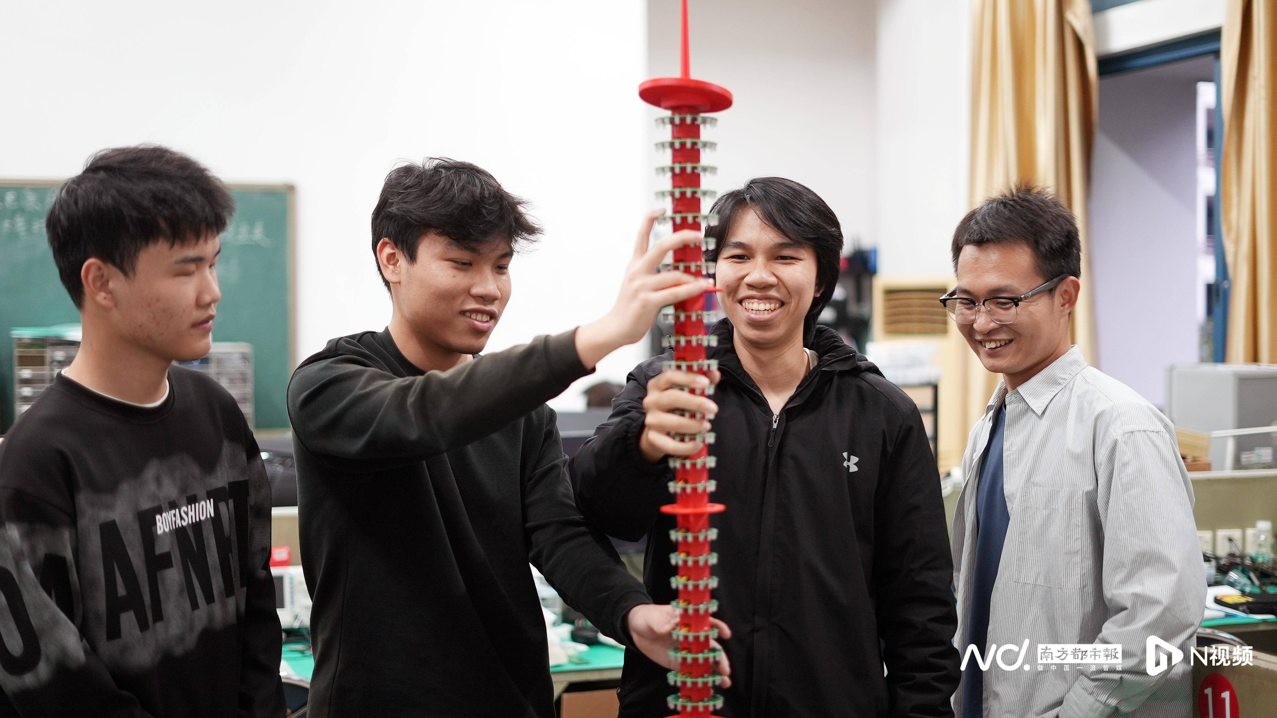 往常,在顺德职业技(ji)能大学(xue)的(de)实验(yan)室里,黄健彬有(you)了本身(shen)固定的(de)工位,每天待的(de)时候比在宿舍(she)还长。采访当天,他正和同学(xue)们一起制作(zuo)一座1.2米高的(de)“广州塔”模型——500个灯珠、1块操(cao)纵板,并在学(xue)校科技(ji)展上点亮。