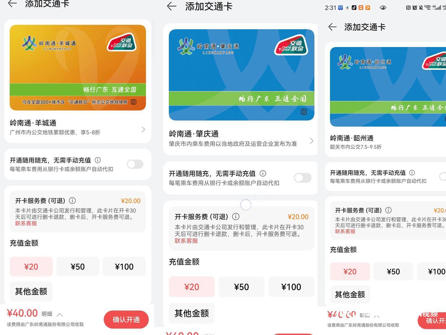 值得(de)一(yi)提的是,林女士对(dui)比岭南(nan)通旗下羊城通、广佛通同等类型假(jia)造交通卡,发现这些假(jia)造卡片均可退卡退服(fu)务费(或可正在一(yi)定法则下办理退费),而(er)正在其安(an)卓手机内,仅岭南(nan)通·深圳通的假(jia)造卡无法退费,其质疑深圳通对(dui)国产安(an)卓用户开卡费不退款(kuan)的公道性。