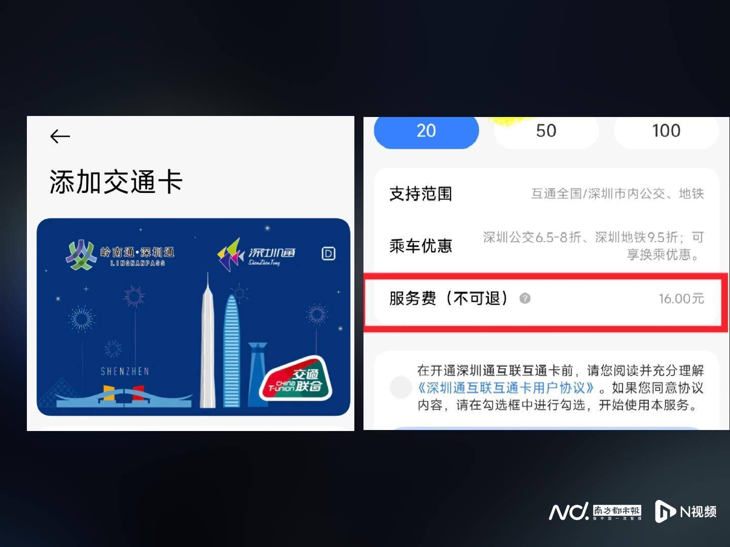 林女士表示,自己(ji)此(ci)前(qian)使用过实(shi)体的深圳通交通卡,通常押金可退,因(yin)此(ci)正在开通手机交通卡时(shi)构成了惯性认知;别(bie)的,其女儿所用的手机为iPhone17,开通深圳通手机交通卡时(shi),苹果手机表现20元服(fu)务费并注明“30天可返还”,而(er)自己(ji)的国产手机则表现“服(fu)务费不可退”。“都是假(jia)造卡,为什么法则差这么多?”