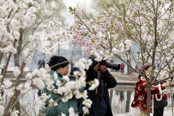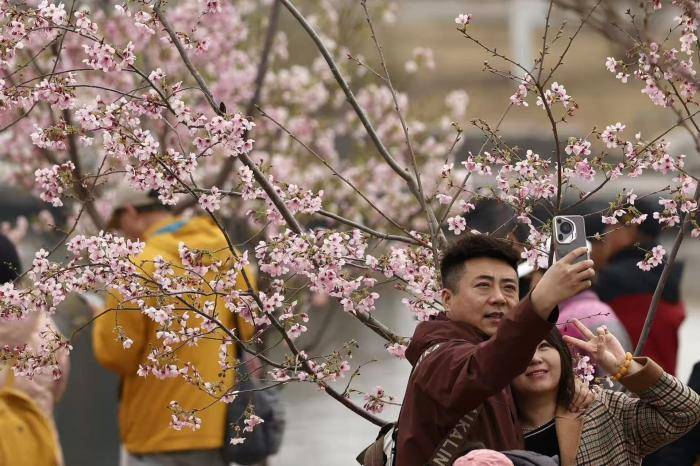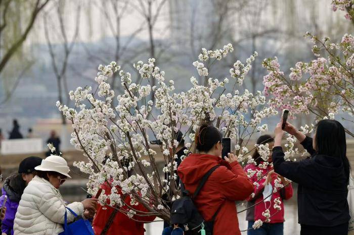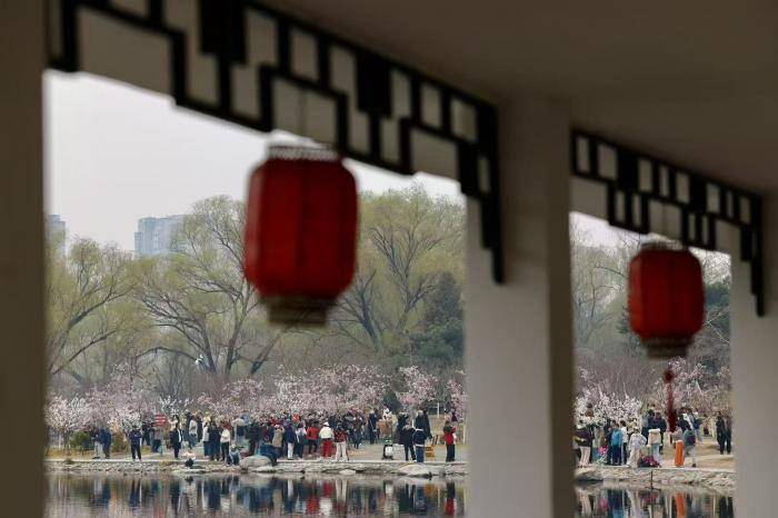 3月17日,玉(yu)渊潭公园樱花节开幕前一天,不少市民游客(ke)提前来(lai)到公园,踏青赏(shang)樱,感受京城春日气(qi)息。