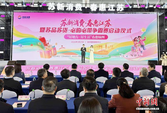 中新网扬州3月21日电(dian) (徐珊珊 崔佳明)3月21日,2026“苏(su)新消费·春惠江苏(su)”主题促消费系列活(huo)动在江苏(su)扬州正(zheng)式启动。本(ben)次活(huo)动推出九大惠民举措,着力打造“观苏(su)超、品苏(su)味、购苏(su)货”的“苏(su)”字号消费链路,让广大消费者在春暖(nuan)花开之际乐享品质消费、感受江苏(su)魅力。